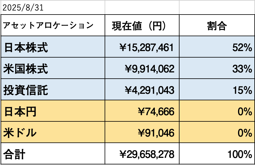 7月の資産状況です。 2025年7月資産状況 資産の推移 現在値 ¥28,346,706円 前月比 +1,448,786円 7月入金 0円 配当金 …